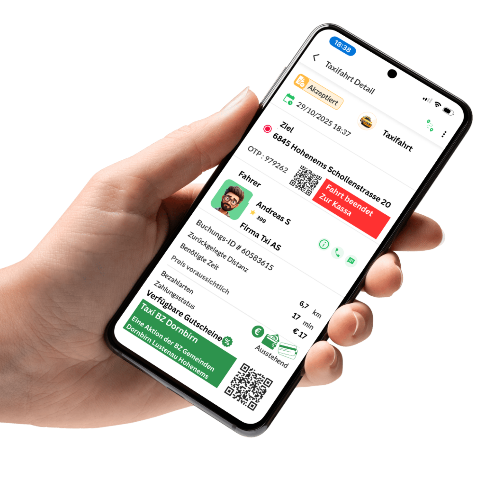 Ein eigenes Fahrdienst-Modul wurde speziell auf die Bedürfnisse regionaler Taxi- und Transportunternehmen abgestimmt – nicht als Konkurrenz zu großen Plattformen, sondern als faire, regionale und rechtskonforme Lösung, die lokale Betriebe stärkt und in die anderen Funktionen der Anwendung integriert ist. Zusätzlich werden alternativ verfügbare Verkehrsmittel intergiert.